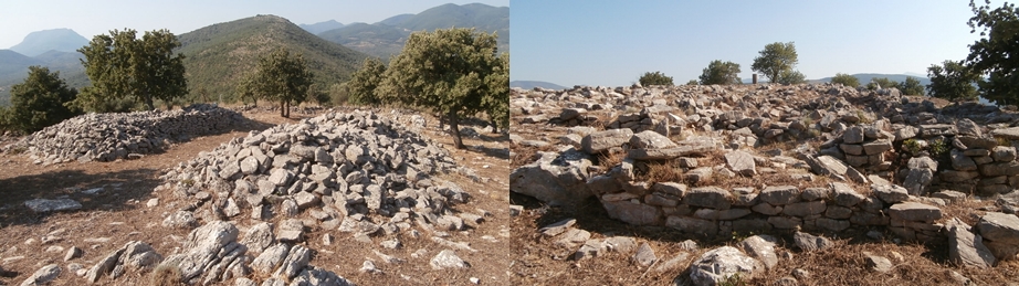 θολωτοί τάφοι δυτικά του λόφου, εκ των οποίων ο ένας σώζετε σε καλή κατάσταση.
