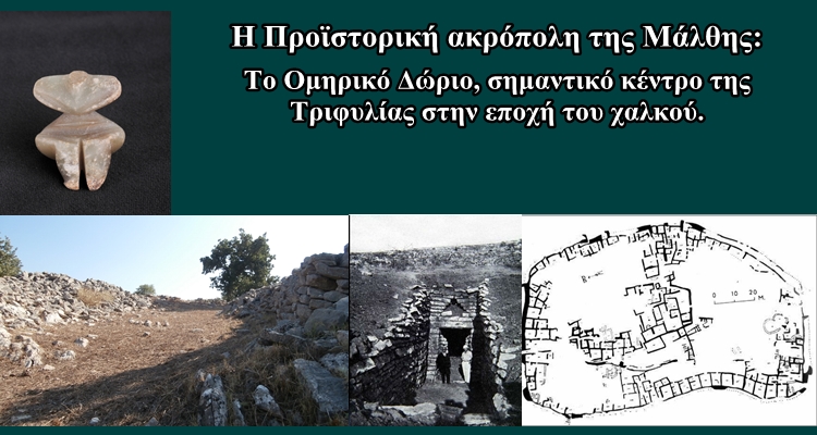 ακρόπολη της Μάλθης που έχει ταυτιστεί με το Ομηρικό Δώριο βρίσκεται 3 χιλιόμετρα στα βορειοδυτικά
